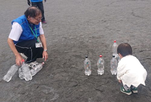 📷ペットボトルが、ボウリングのピン代わり