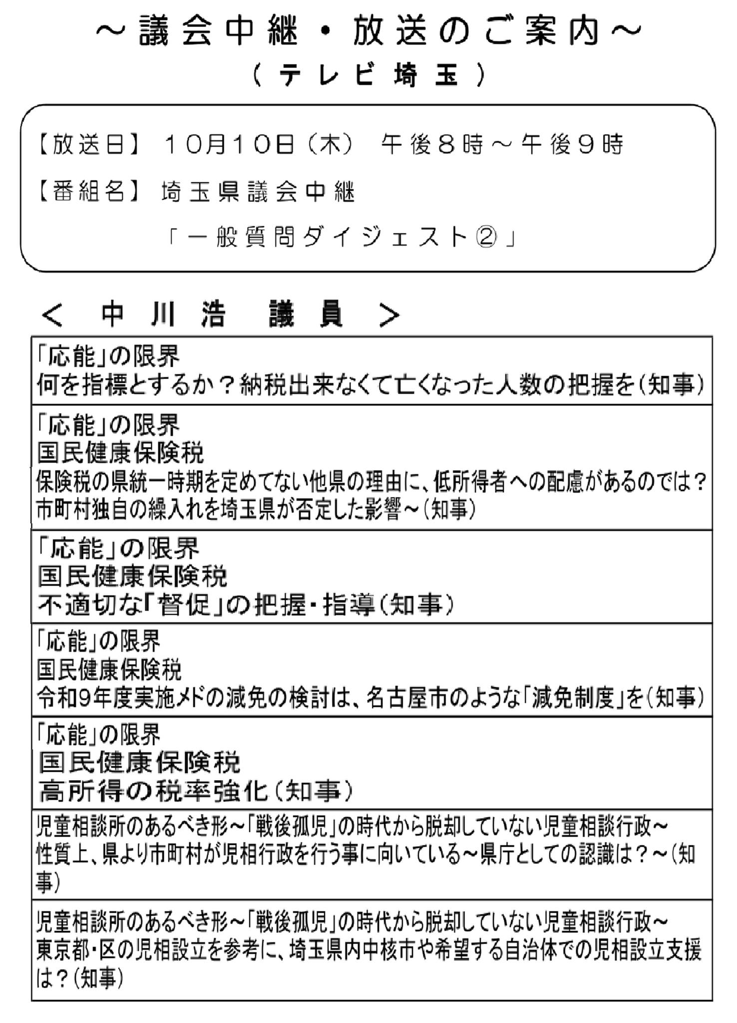 命を守る為、魂込めて質問しました。録画するなどして、ご覧下さい。放送枠で3人目です。(いま資料が手に入り速報)