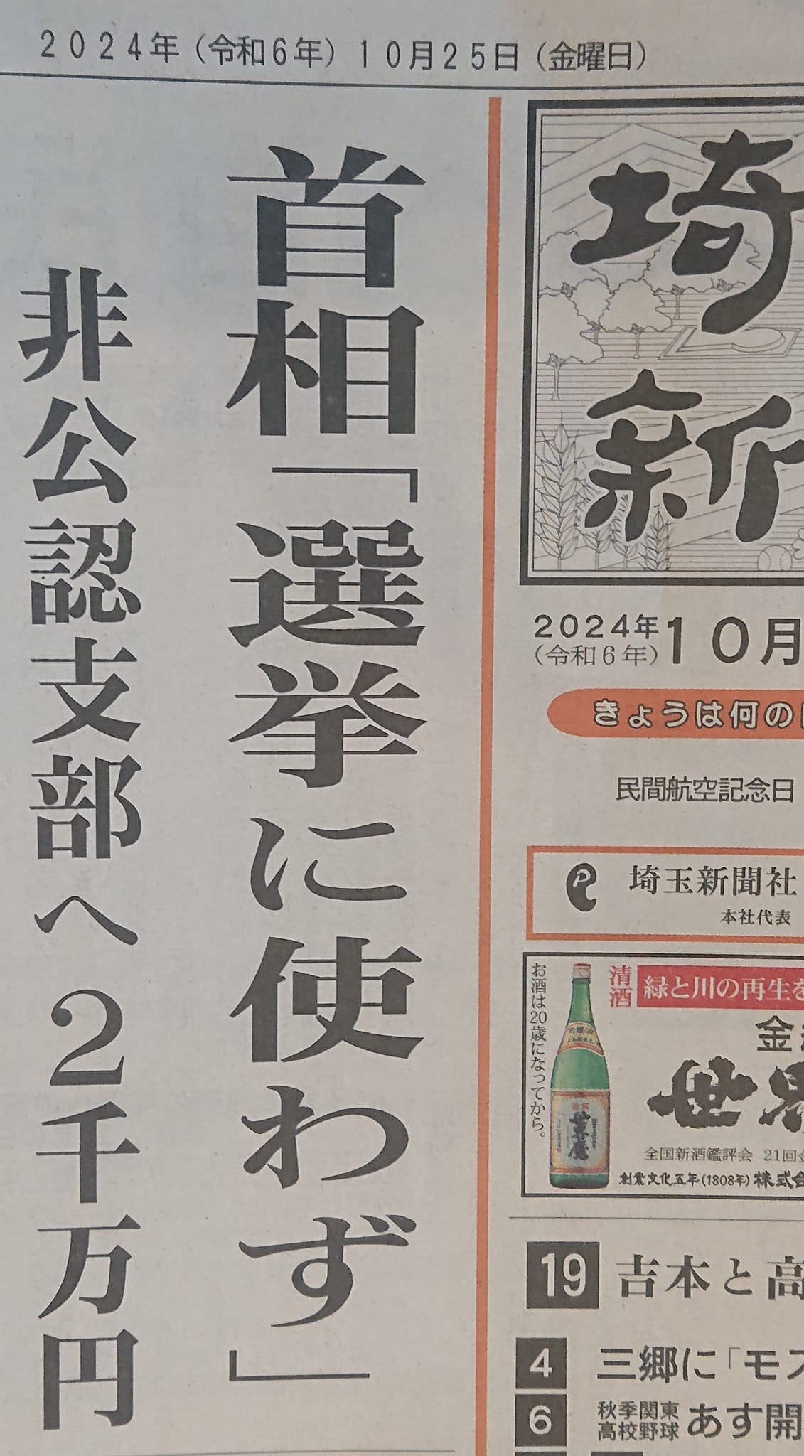 今日の埼玉新聞1面トップ記事)