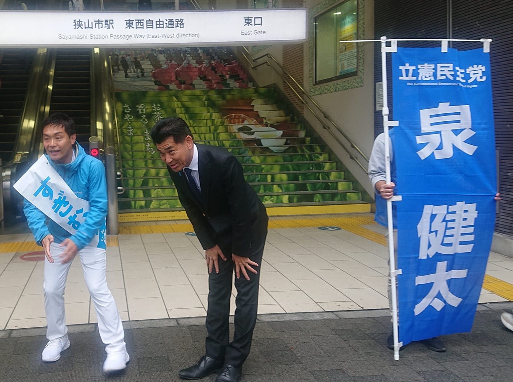 泉 立憲民主党前代表と狭山市駅を8時半過ぎにスタート