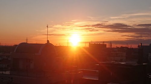 今日(金)は体育館での仕事なので、レッグウォーマー履いて出掛けます。体育館って寒いよね。☀真夏・冬☃は『避難所』として不向き。神戸の震災で私は体育館に半月、寝泊りしましたが、寒くて眠れない。風邪ひくどころではありません。着込んでも。 (8日の🌄日の出)