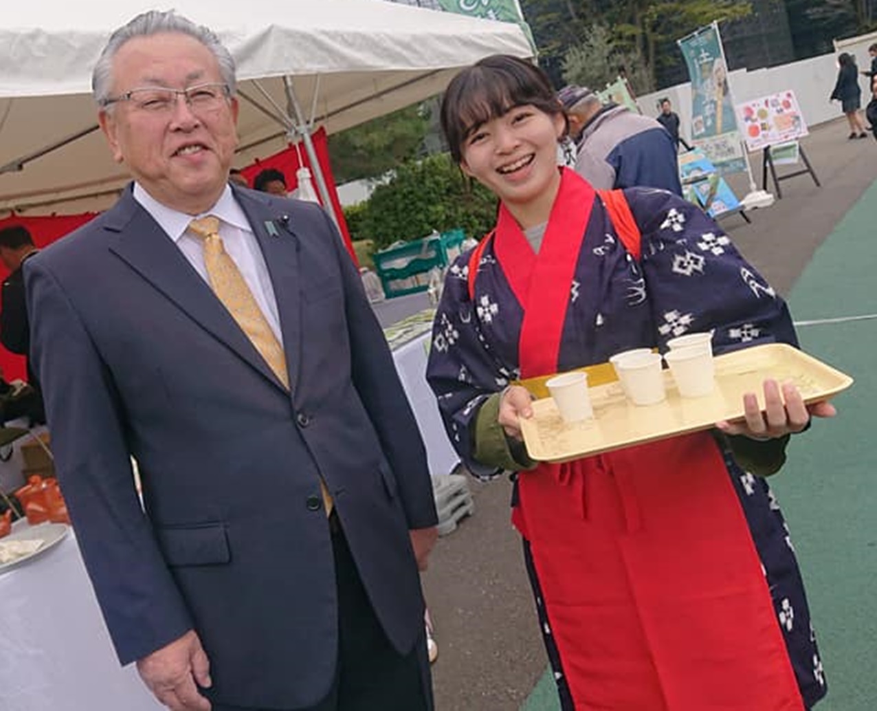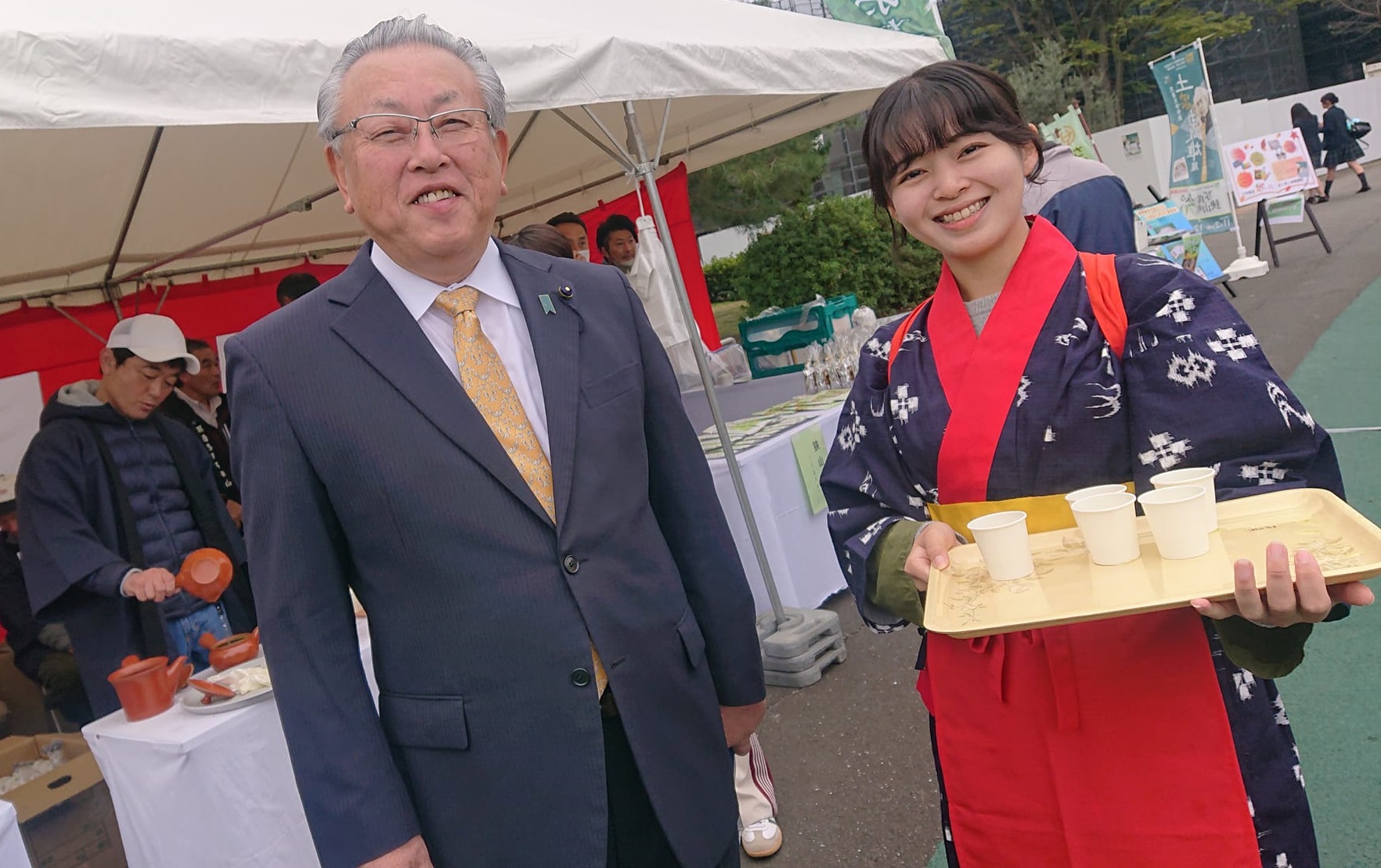 狭山茶を使った紅茶を開発した狭山工業高校の先生と。