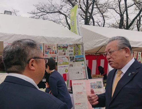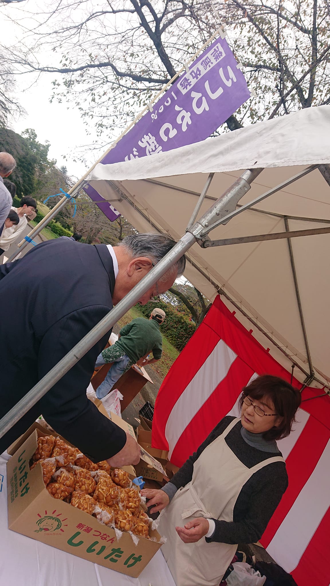 造園業(📷左。深谷市・神尾県議)をしているので「あの桜はもう切らないと」と言われ、私から「公園内ではこれでもまだ若いほうで、駅前の通りの桜はほとんど老木」と話さざるを得ませんでした。植樹してはいるものの、桜の数も足らなくなっている。狭山市の観光名所なので大事で、公園管理者と話しています。