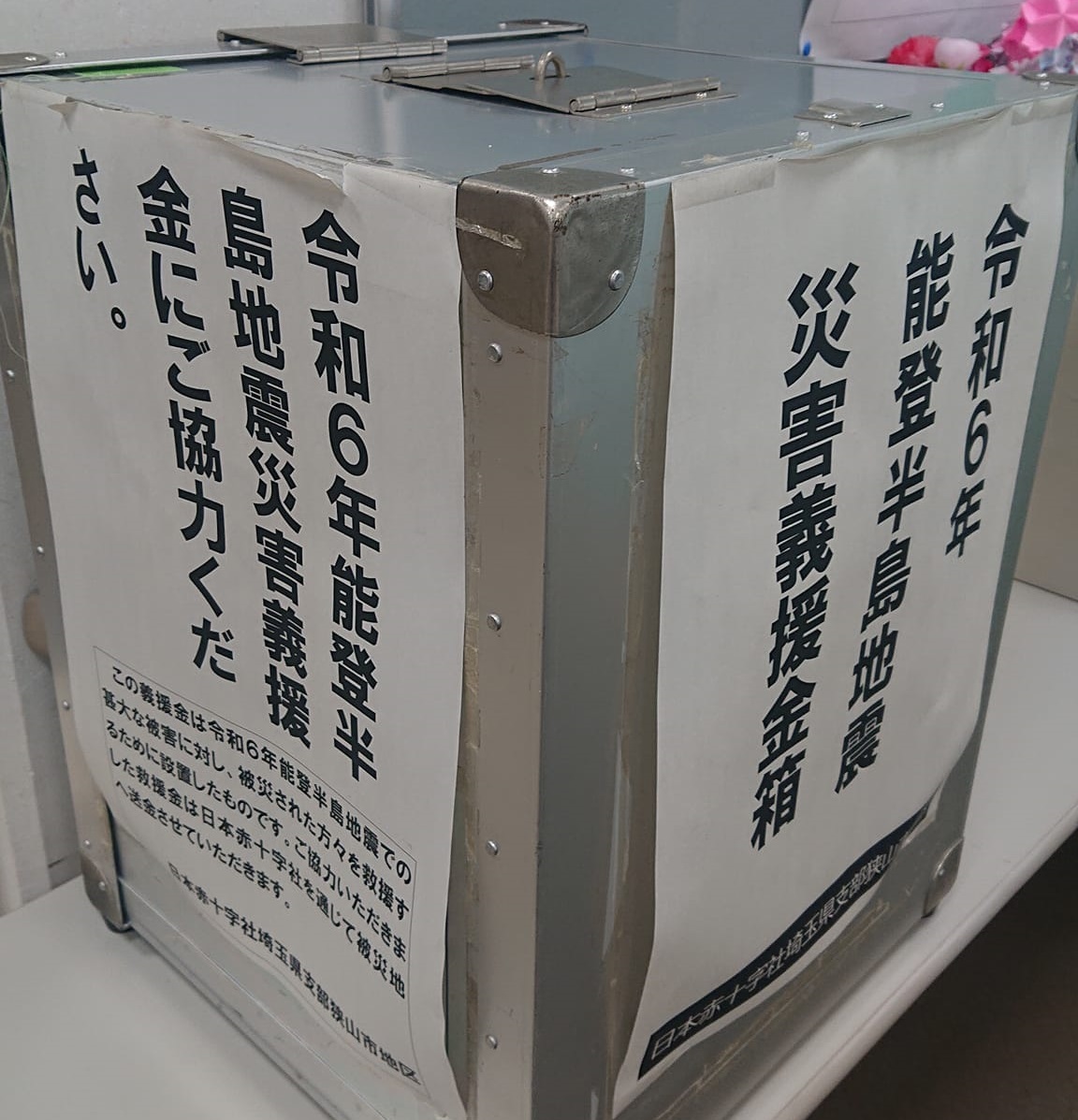 フードバンク事業を公共施設で行っているすぐ隣の募金箱にご協力下さった市民の方がいらっしゃったので、私が能登に行った時の写真をご覧頂き、現地の状況を(一緒に居たボランティアさん達にも)お伝えし、感謝されました。