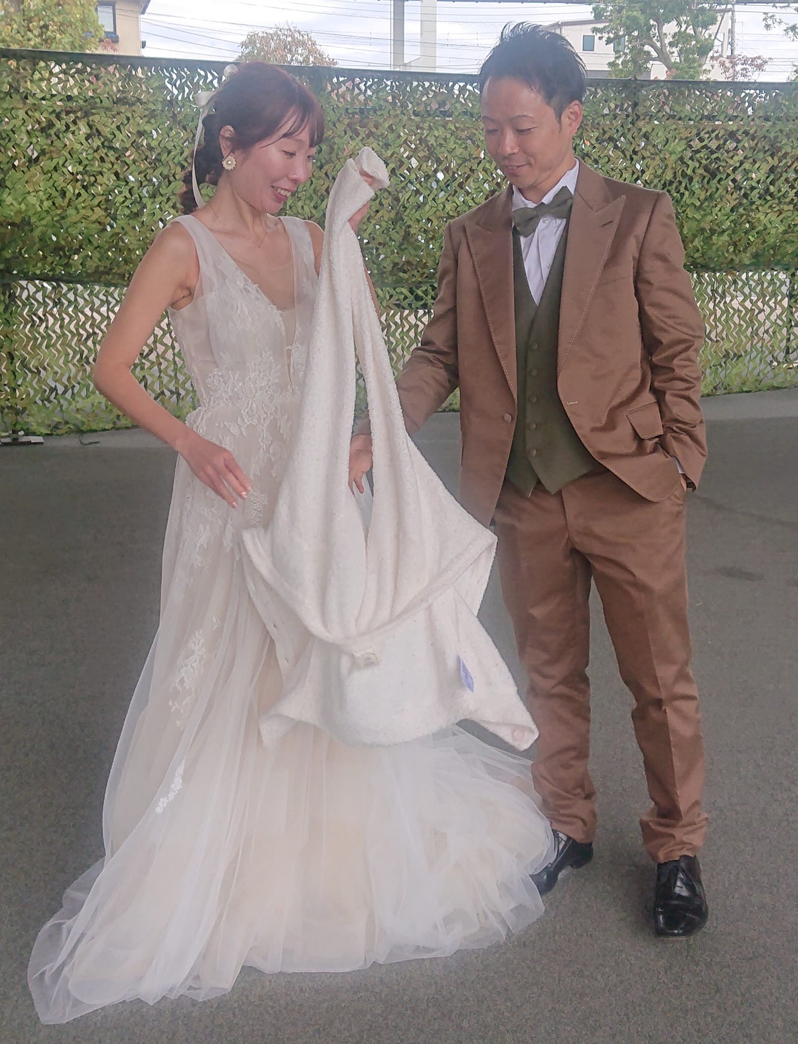 研修で都市公園(民営)にいたら・・・花嫁さん達がいて、「後ろから撮っていいですか?」と言ったら、なんとすぐ羽織を脱いで️記念撮影に。幸せになって下さいね。お2人のお陰で片時だけでも、ほっこりしちゃいました。ありがとうございます。プロの写真家の方が後ろから付いて来てましたが、私だけパチリ。私の知り合いの写真家も普段、公園などで撮影しています。 (市立千葉公園にて。後程詳しく。花嫁さん達が検索して見つけようとされるだろうから、先行してUP)