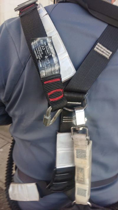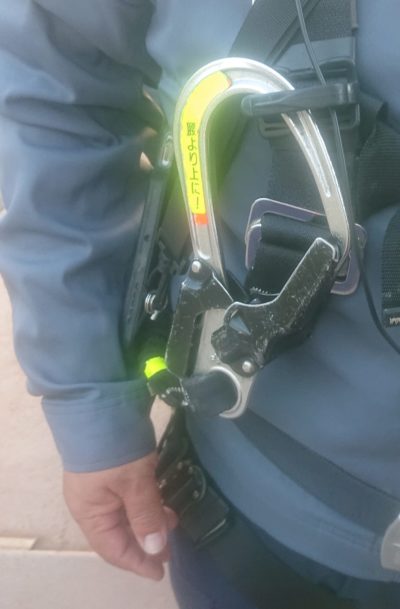 今では写真のように、命綱が背中にも前にも付いています。