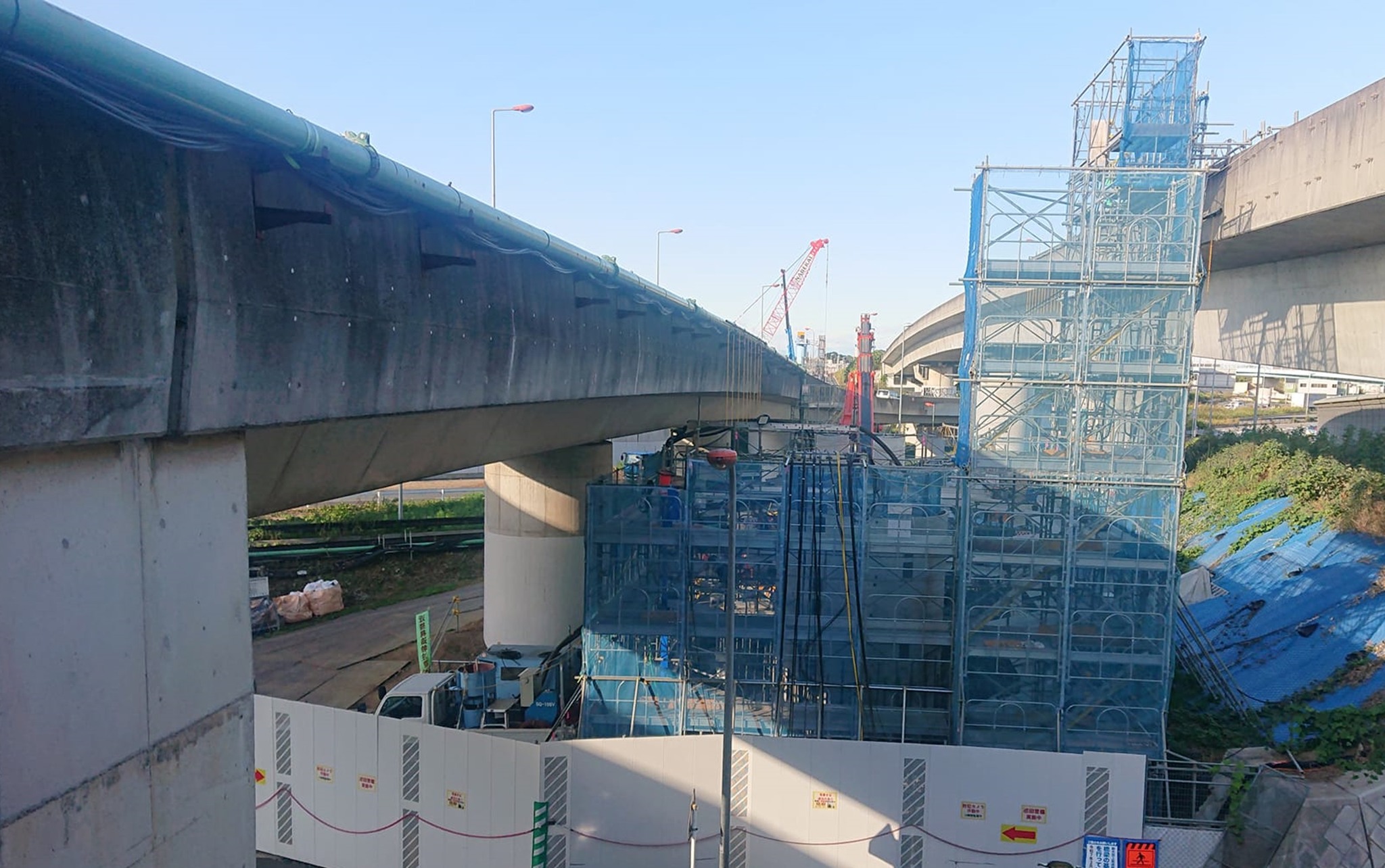 足場の先に、建設中の橋脚が。