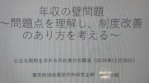 11/26(火)「年収の壁問題~問題点を理解し、制度改善のあり方を考える-」リアル&オンライン学習会ー公正な税制を求める市民連絡会
