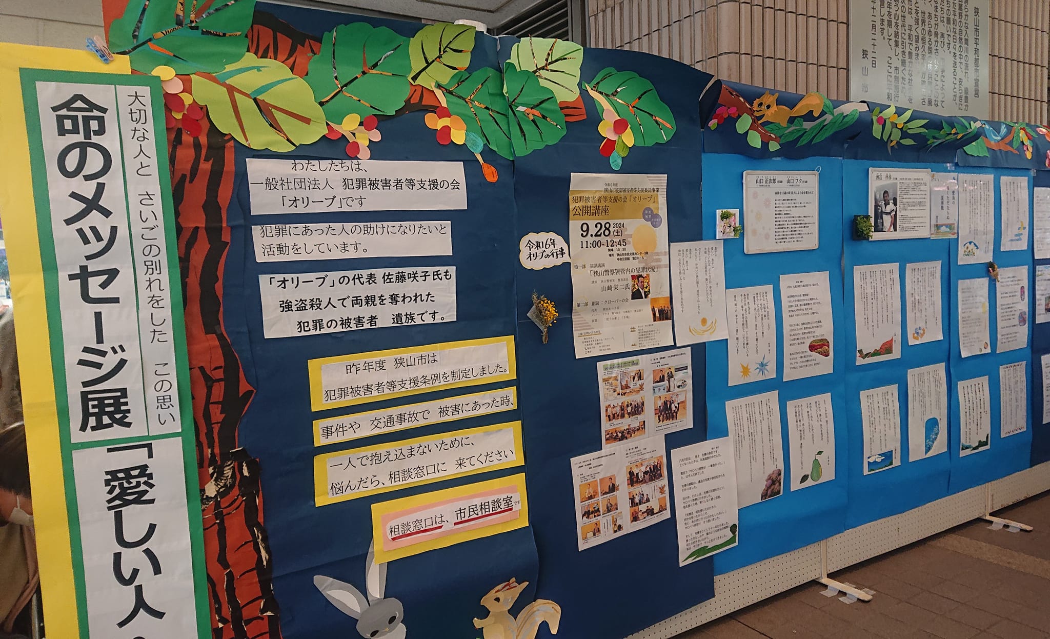 狭山『犯罪被害者』の会の、被害に遇われたご遺族のコメント展示が木曜(28日)まで市役所で行われており、複数のボランティアさんが毎日7時間会場に居ます。私は2日間お邪魔し、会から👧フードバンク👦に食品提供も頂きました。m(__)m