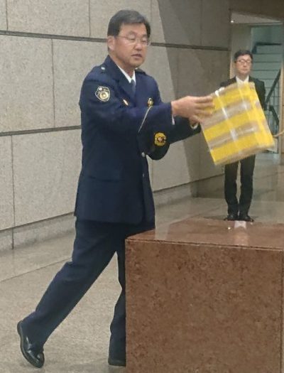 警察署長・爆弾処理班出席のもと、訓練。私は小さな提議をさせて頂きました。現在強く求められる『行動変容』。