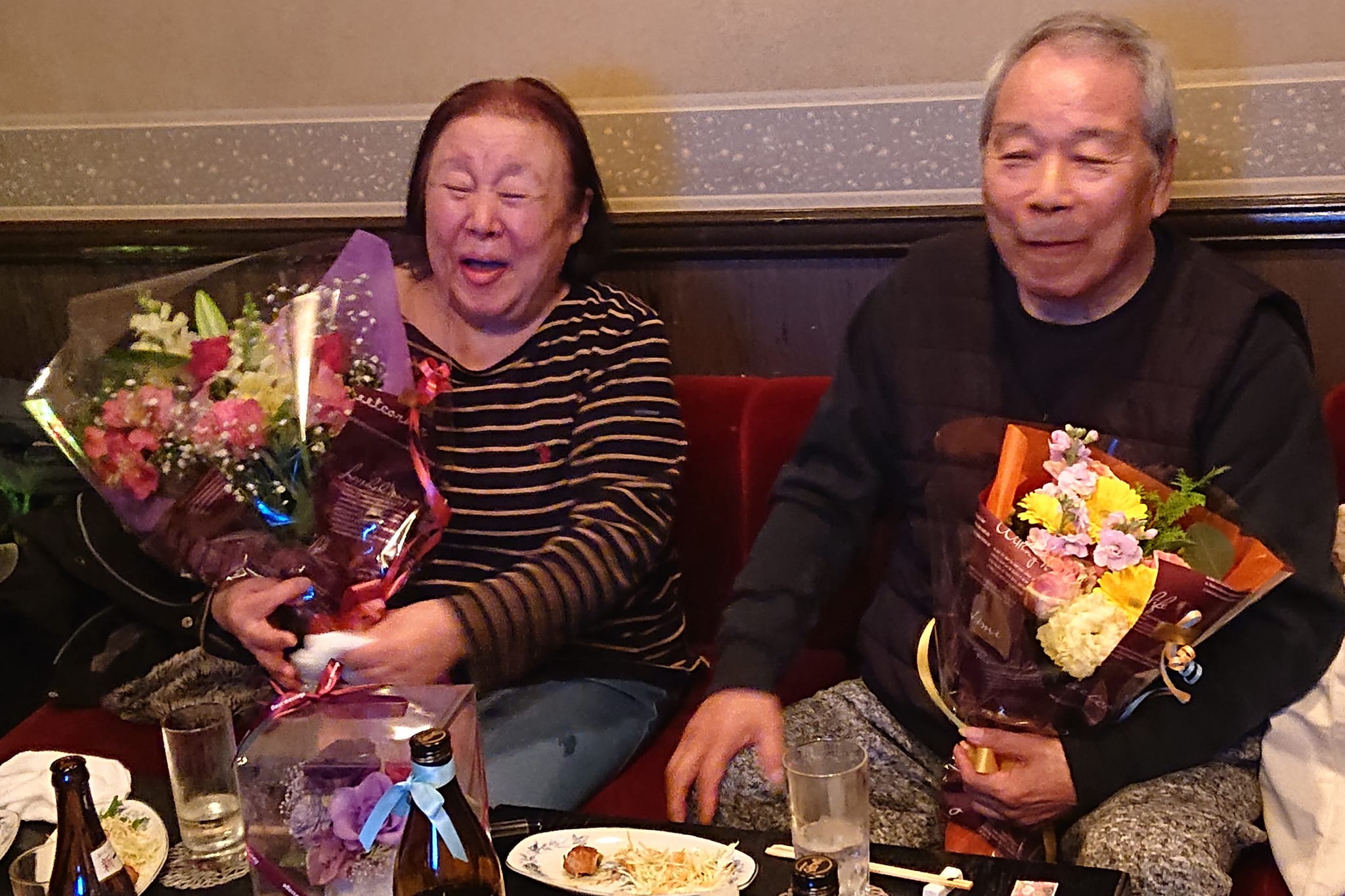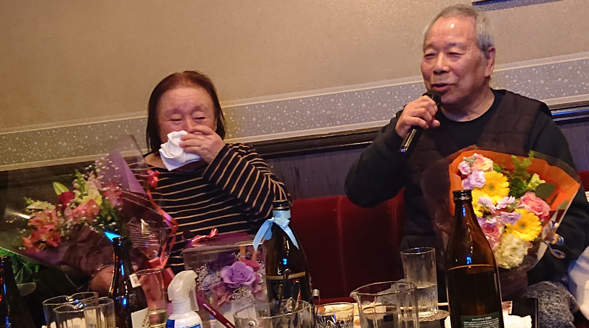(新狭山『とり竹』閉店パーティー③ お父ちゃんの御礼挨拶の️写真)