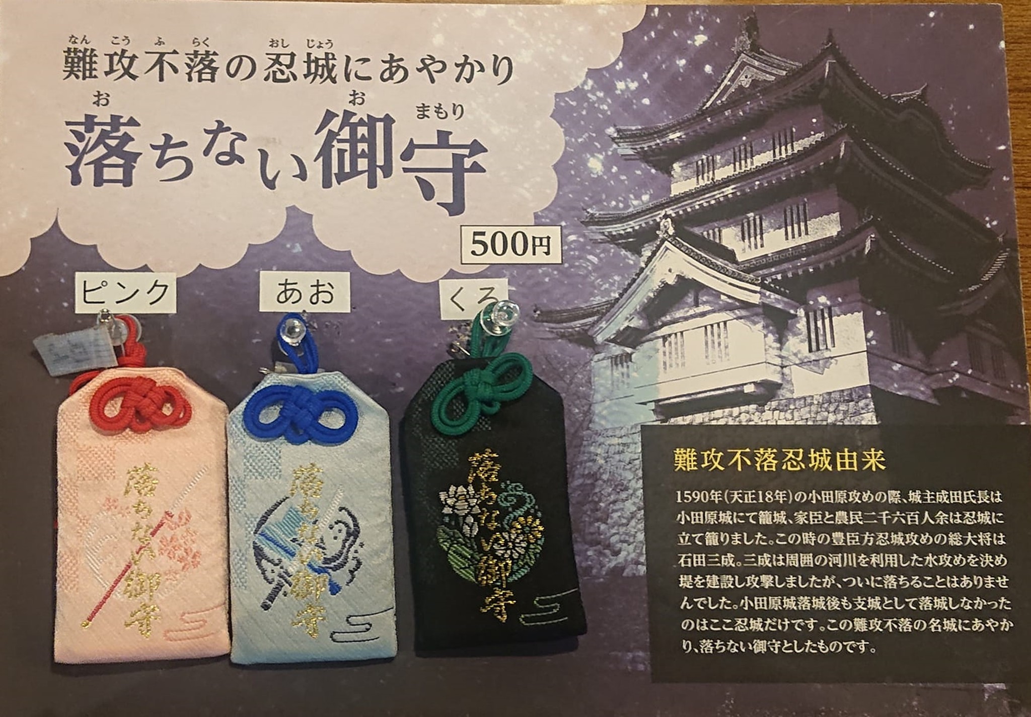 豊臣秀吉をビビらせた埼玉・忍城の『【落ちない】お守り』。私は御利益ありましたよ。今のところ落選していないので。願掛けはお陰様でした事は無いですけど。