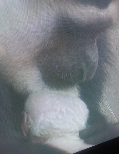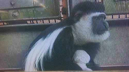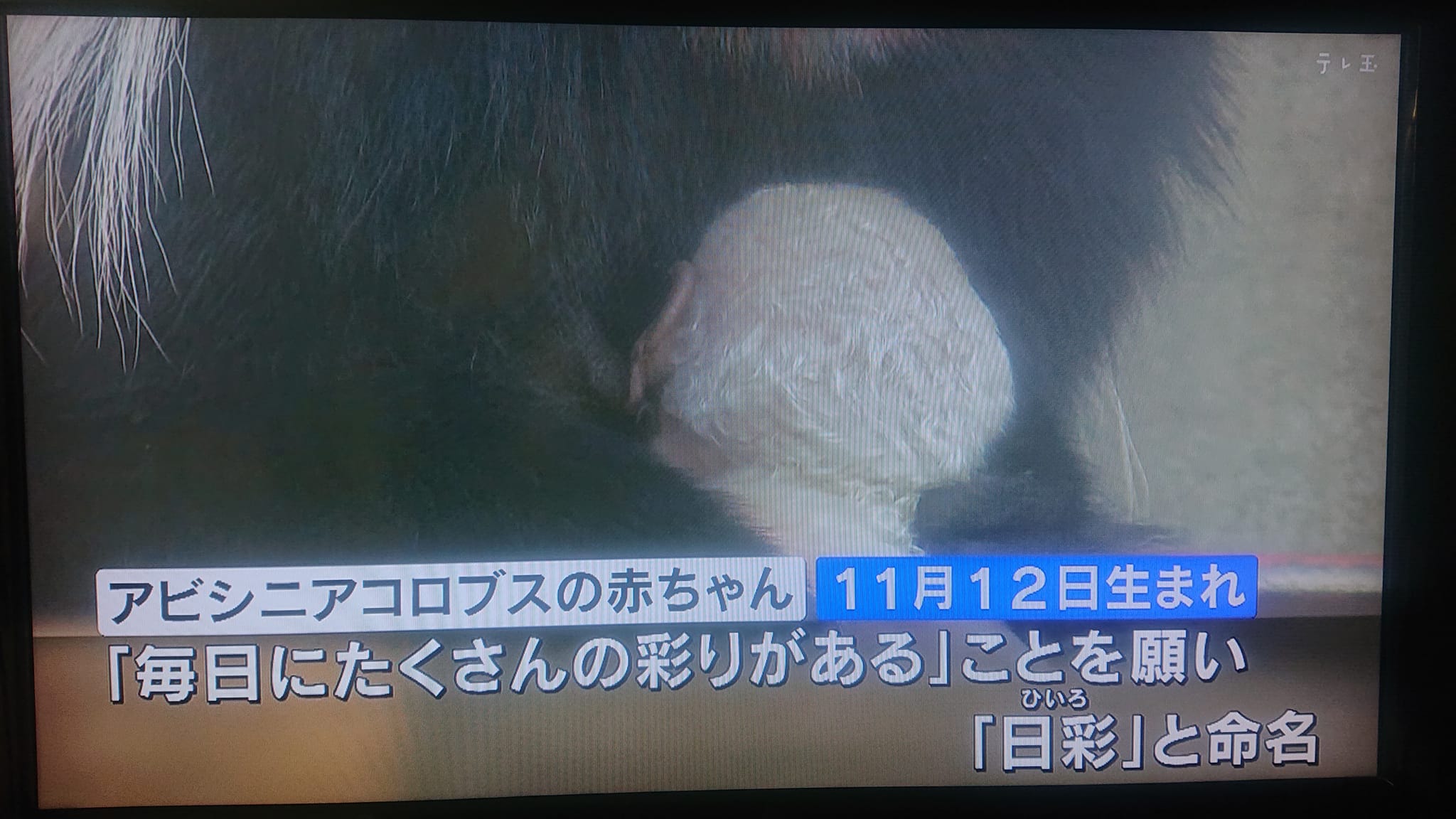 真っ白で生まれて、2カ月で黒い毛が生え始めるそうです。かわい~ね🐵。(TV埼玉。2日)