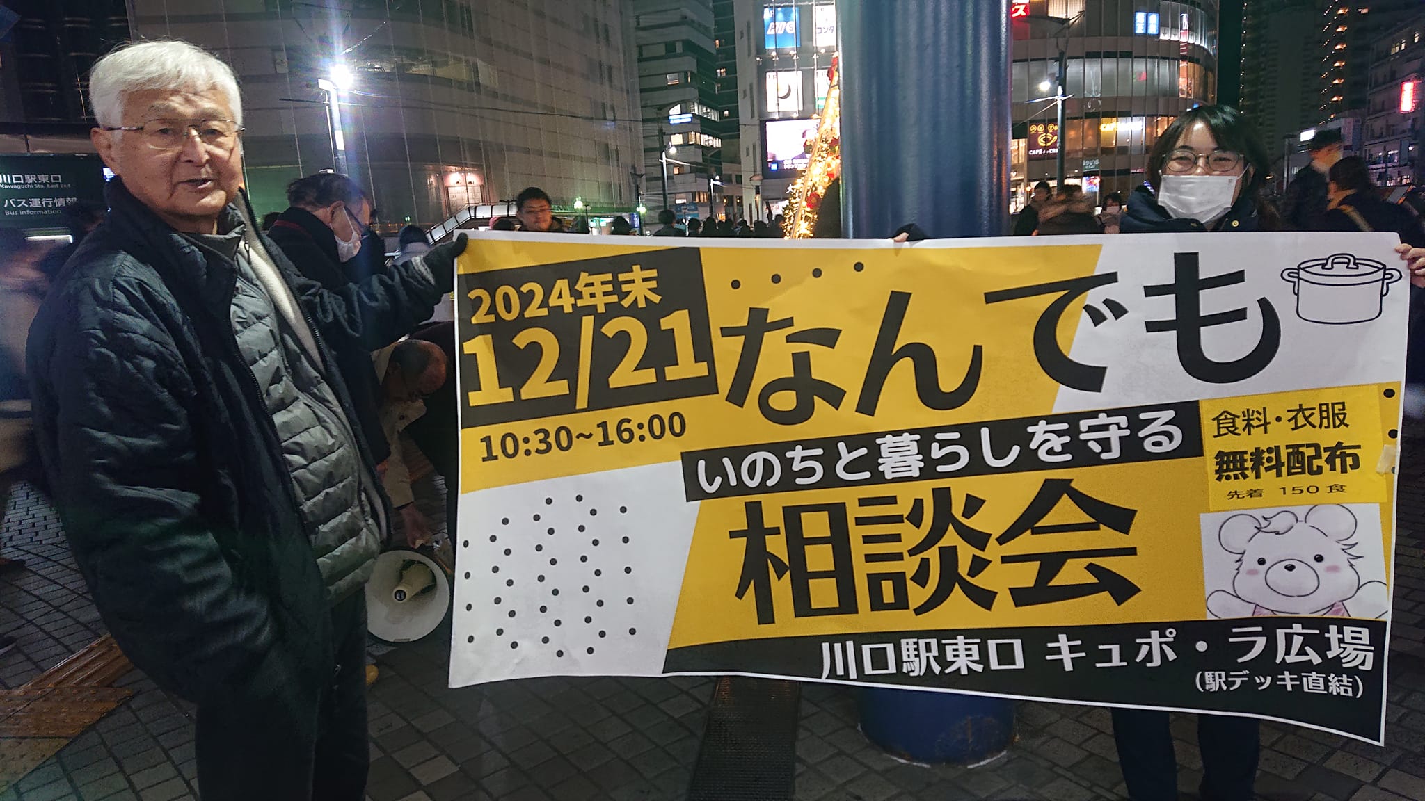 今夜もボランティアさん達と街頭に立つ。路上以外でも助けを求めている県民は、とても多いので。700万人(埼玉)全員で年を越そう❗あきらめないで。