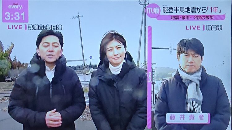 ずぶ濡れで、アナウンサーだけでなく誰彼となく「お疲れ様です」と現地で声を掛け合っていました。災害現場は、見ず知らずでも声を掛け合います。