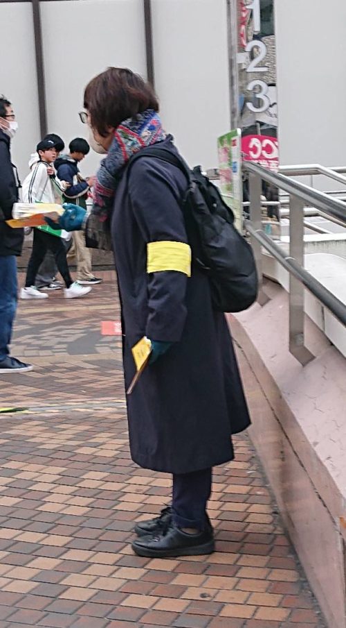 ボランティアが集まっていない所に1人で立って、声掛けをして下さっているところ。交差点に立つなど、写真に撮りきれなかった若いボランティアさん、複数。m(__)m