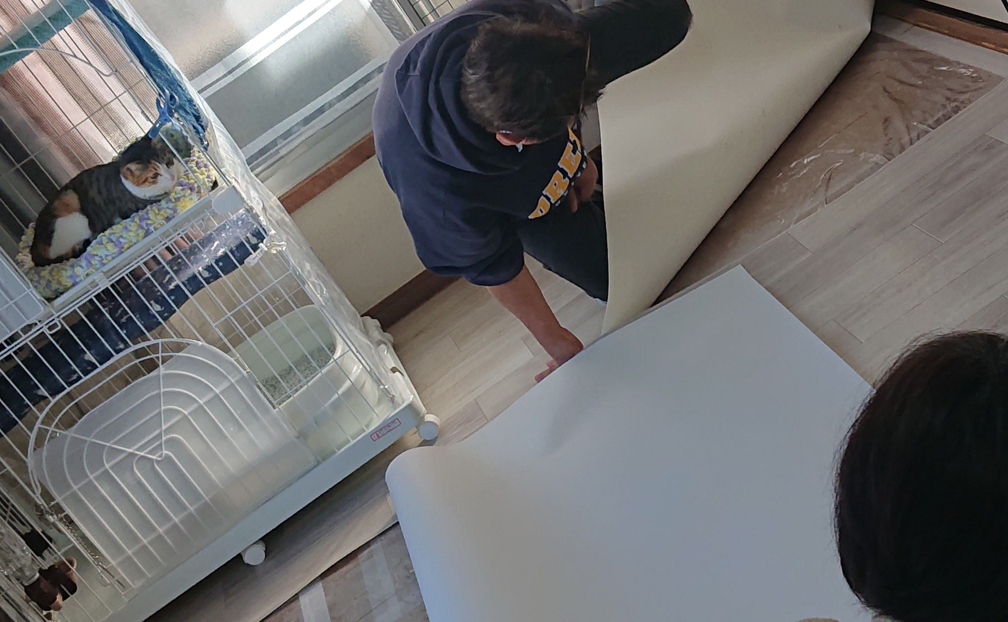 ひろし事務所保護ネコシェルターは先月5年目に突入。年末年始・お盆・GWも毎日ボランティアさんがネコをお世話して下さり、ボランティアの人数もお陰様で増えてます。お正月もネコが️床を傷めないように御夫婦で長時間作業をして下さっており、️新入りのネコが「何してるの?」と見ています。m(__)m