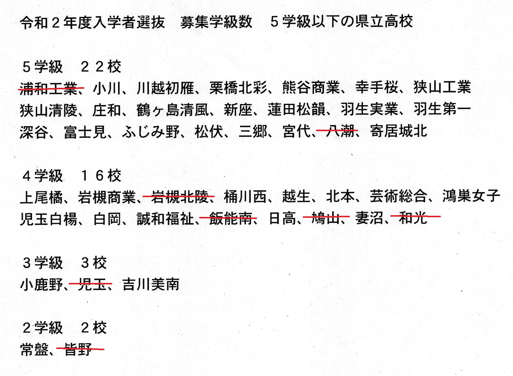 県立高校『学級数』 先ほど添付した最新版と、⇩こちら5年前のあなたの①母校・②街の高校の変化はいかがでしょうか?比較してご覧下さい(📷赤線は既に廃校方針の高校)。(③)