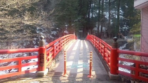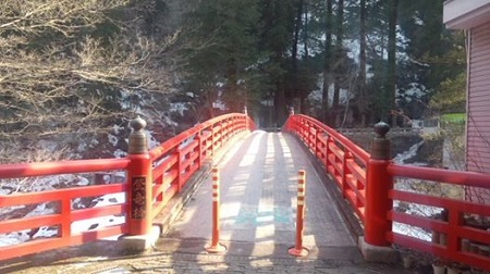 雪かきした橋は、大滝のメイン通り。国道140号で、鳥居がある所が入口(写真は2月の時のもの)。