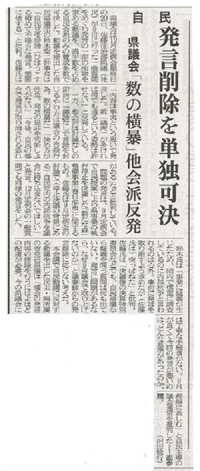 埼玉新聞に今朝掲載された、昨日の県議会で起こった事。
