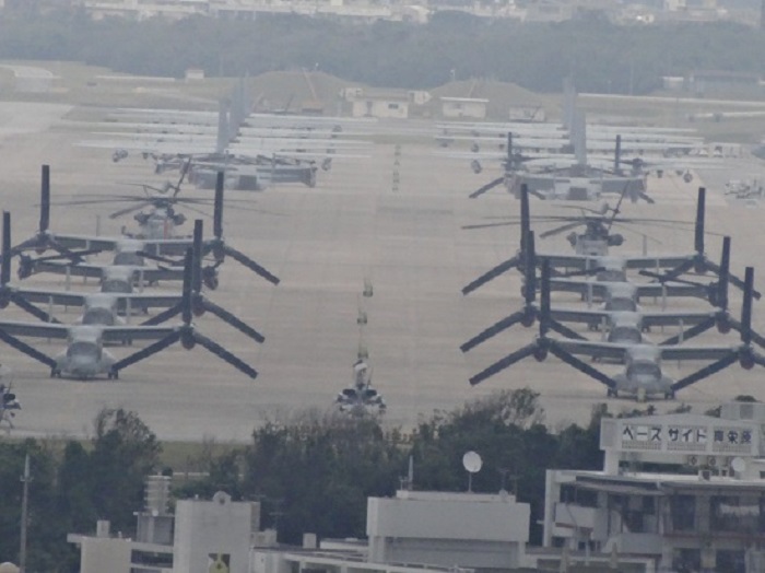 普天間基地は、今日は年末だからか軍用機の発着はほとんど無かったが、これ見よがしに、オスプレイが停まっていた。(前回来た時は、上空から普天間基地をヘリで見たが)今日は普天間基地から離れた所から見たのに、オスプレイは、こんなにデカイものかと驚いた。
