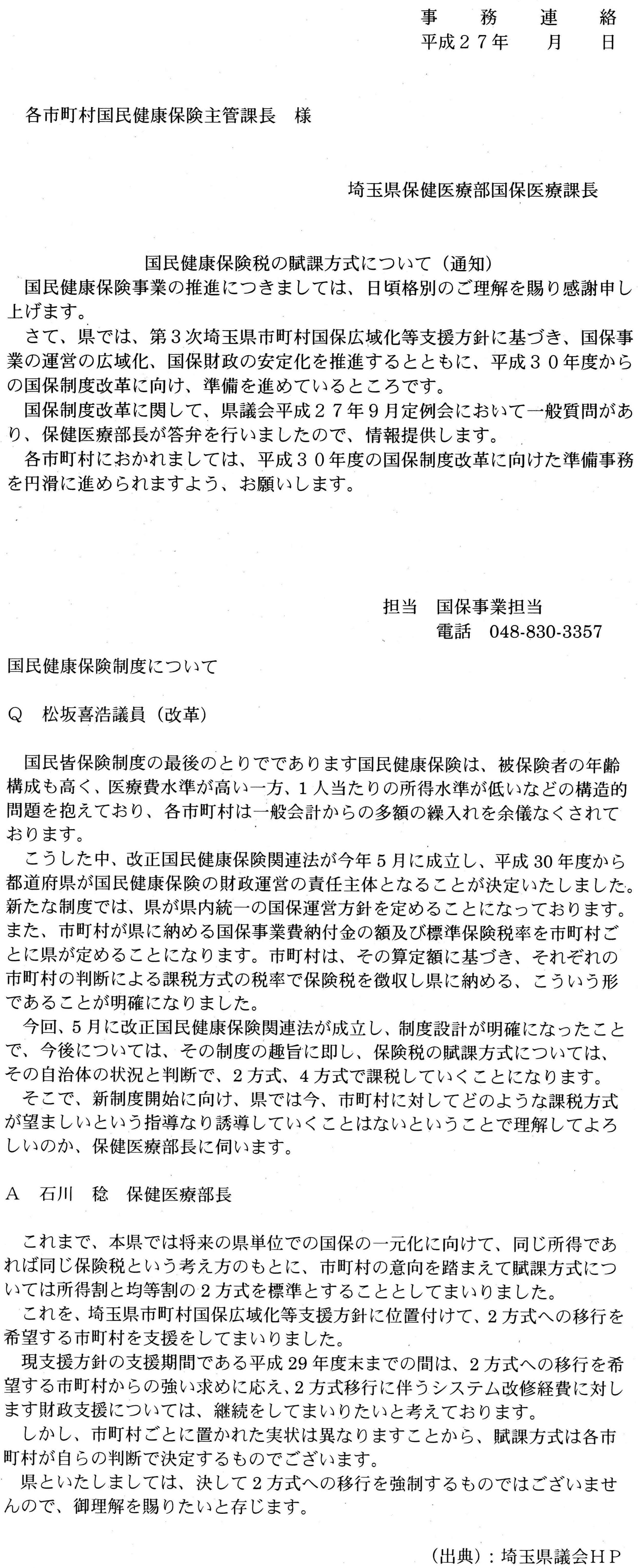 私以外の県議92人(定数)から、国保について説明がありますように。(私のほうでは市町村議員と連携して具体的に取り組んでいます。)
