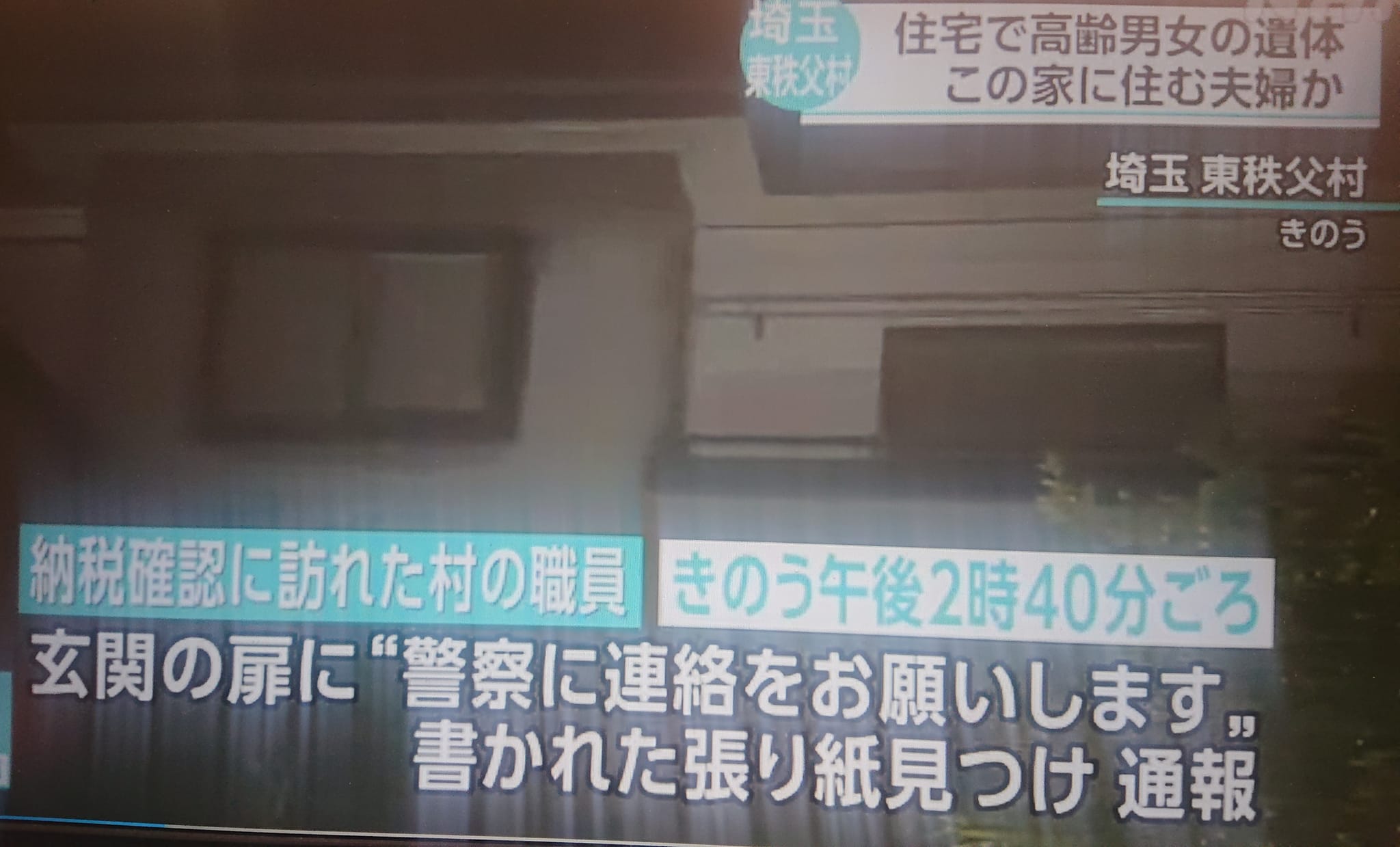 埼玉県東秩父村の住宅で高齢男女2人の遺体(NHK News Web)