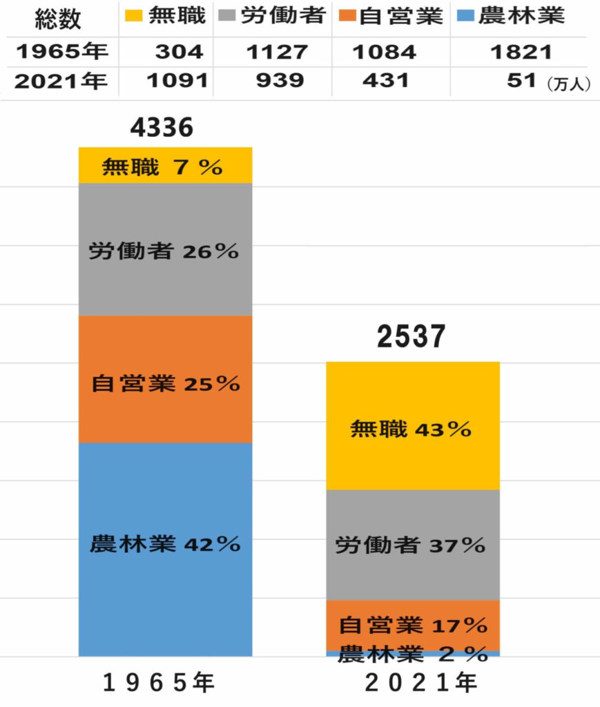 担税力のある『農林業』の国保加入者にしめる比率が過去と比べ激減しているのも、しかりです。